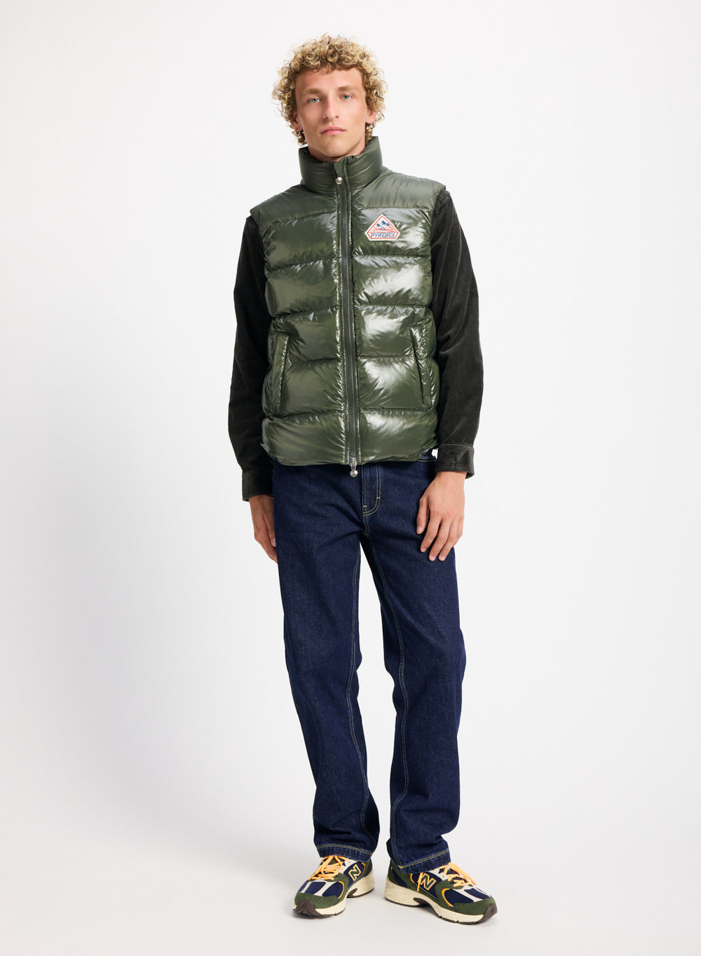 Ärmellose Jacke aus natürlichen Daunen, glänzendem wasserabweisendem Vintage-Stoff und großem Pyrenex Vintage-Abzeichen.
