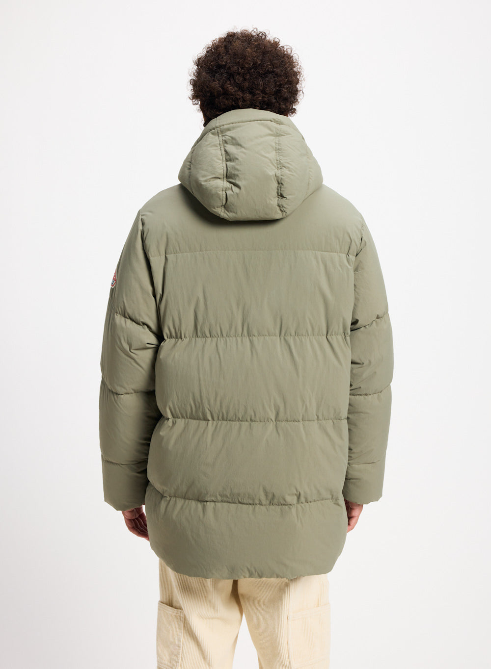 Men's warm natural down jacket with vintage badge.
