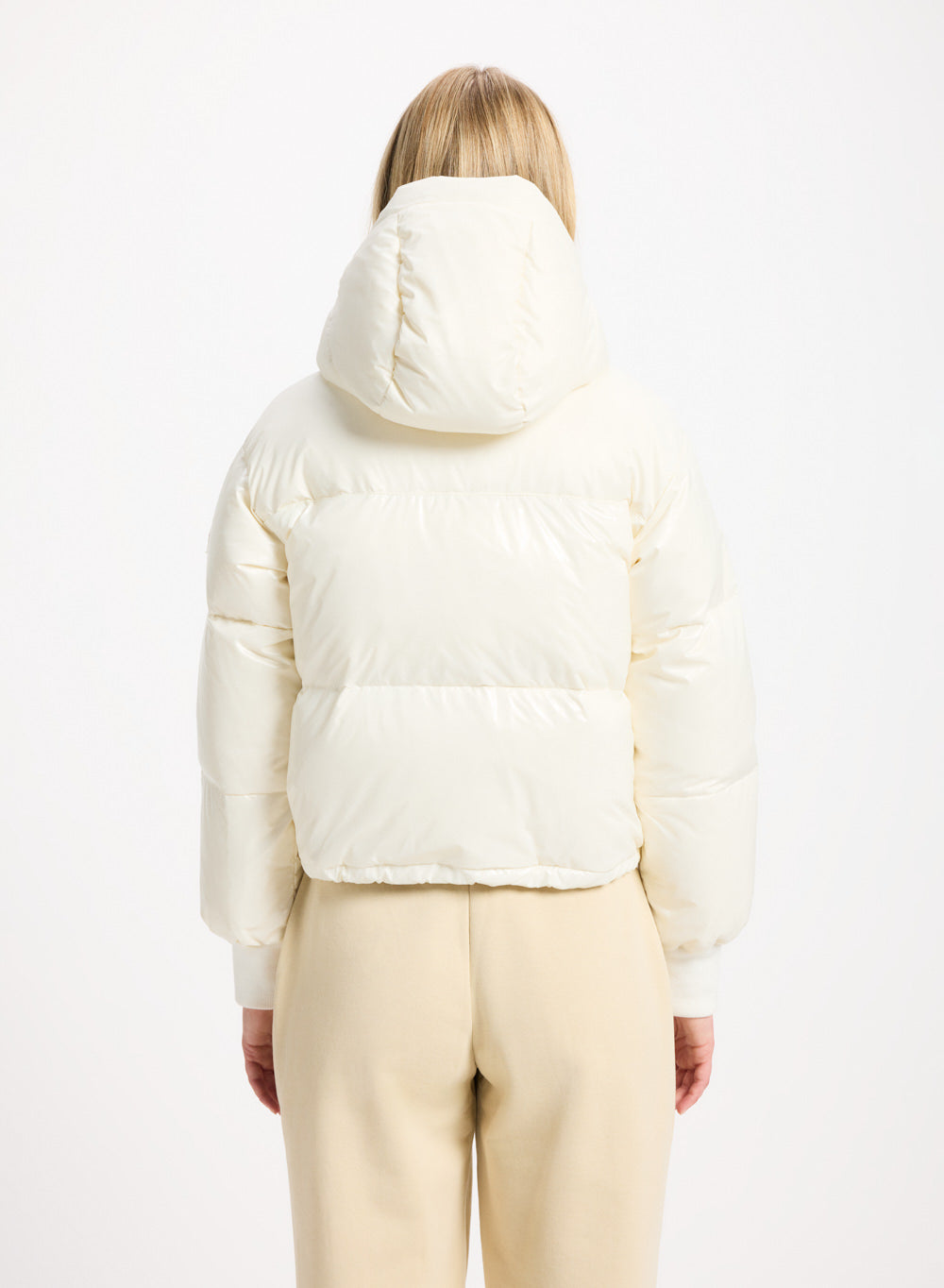 Une doudoune courte ultra mode à capuche amovible et garnie de duvet français.