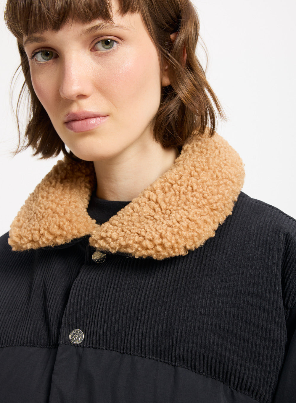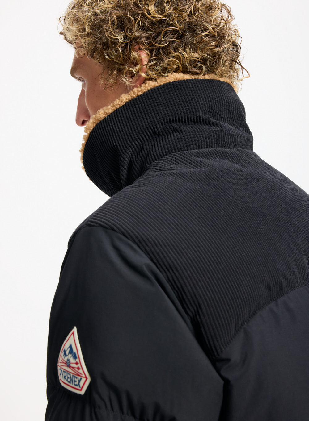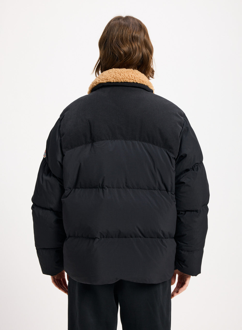 Doudoune style aviateur, col en sherpa et garnissage en duvet naturel.