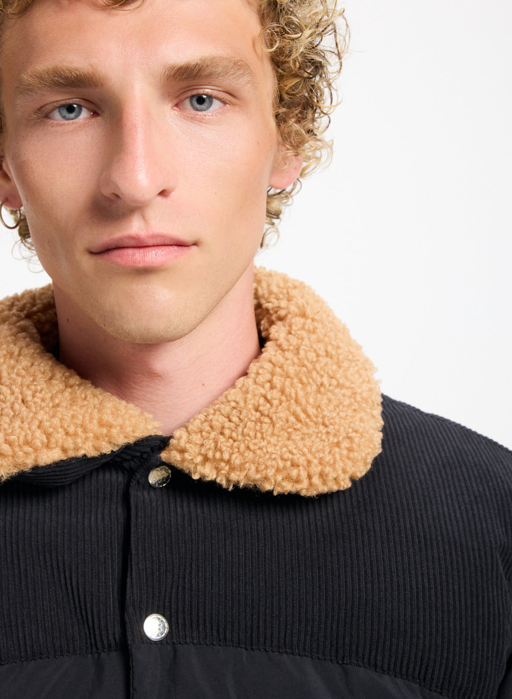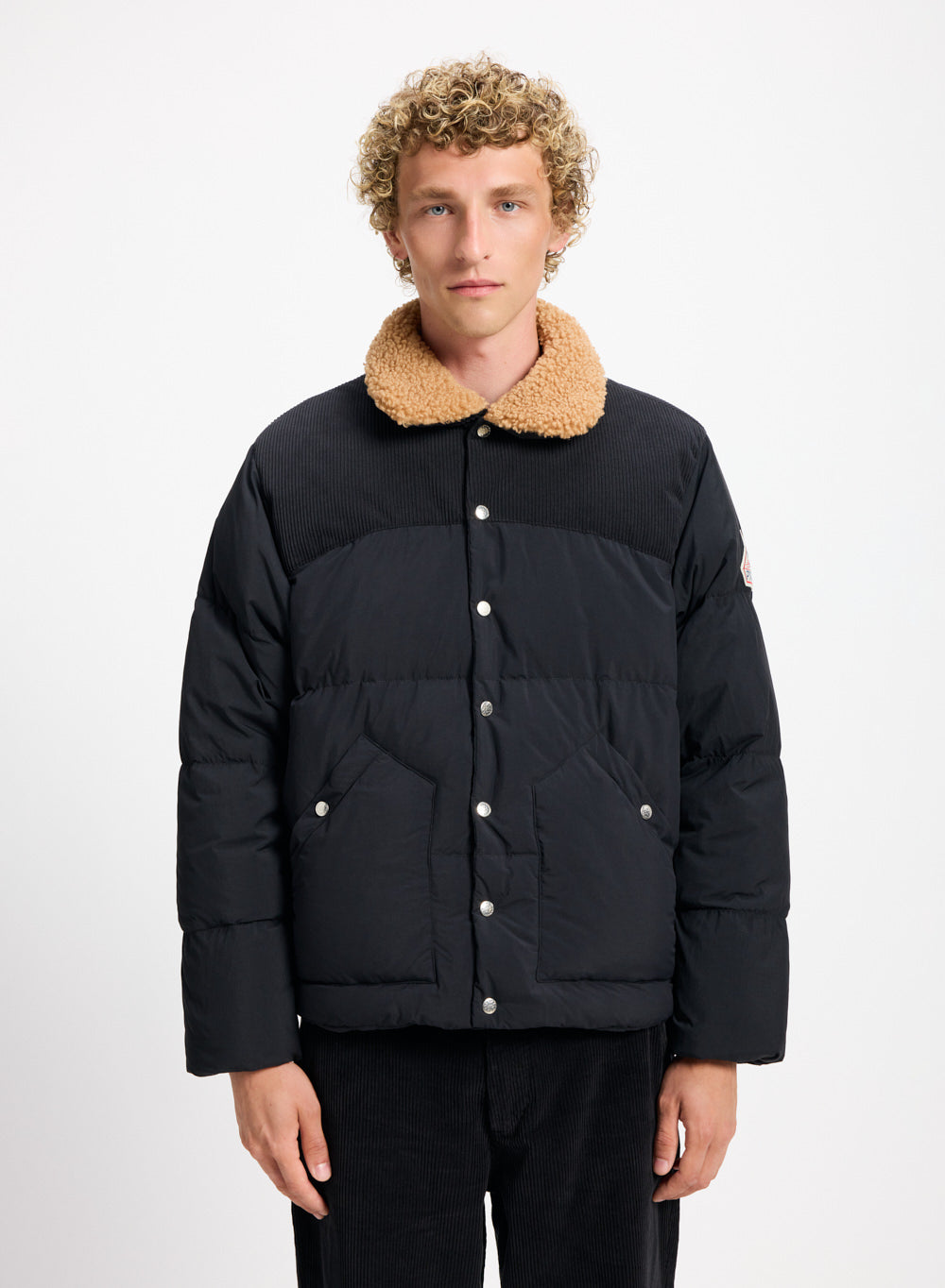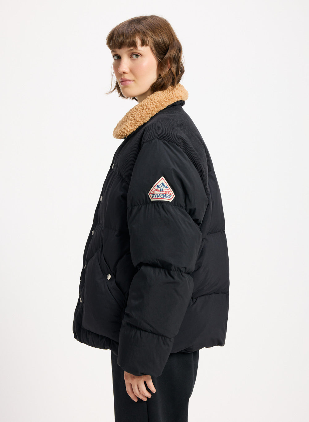 Doudoune style aviateur, col en sherpa et garnissage en duvet naturel.
